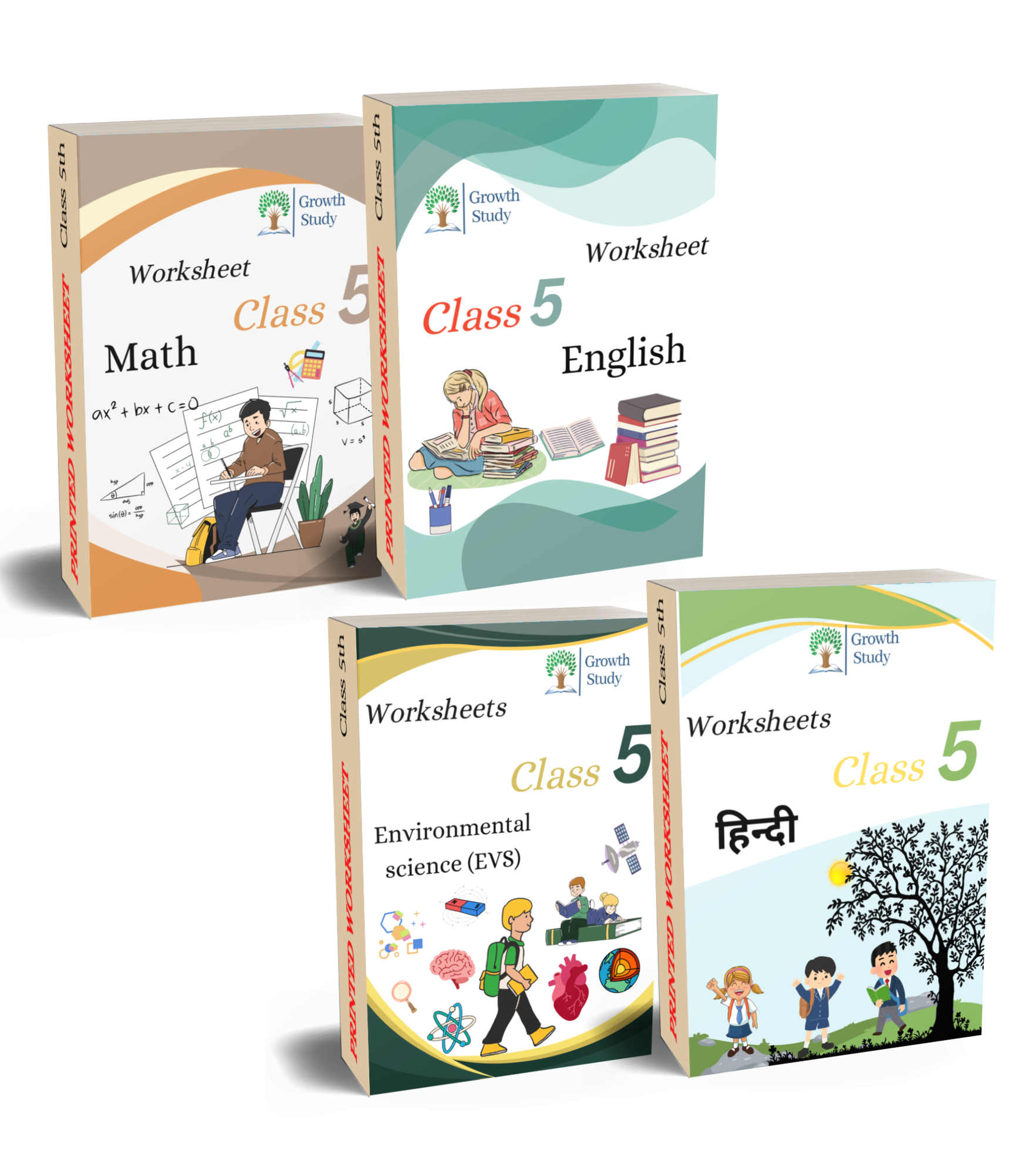 Printed Worksheets Class 5 Math, English, EVS, Hindi | Hardcopy