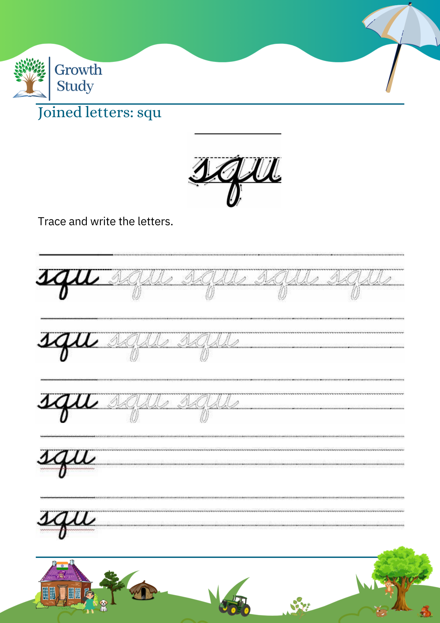 Cursive Handwriting practice worksheets