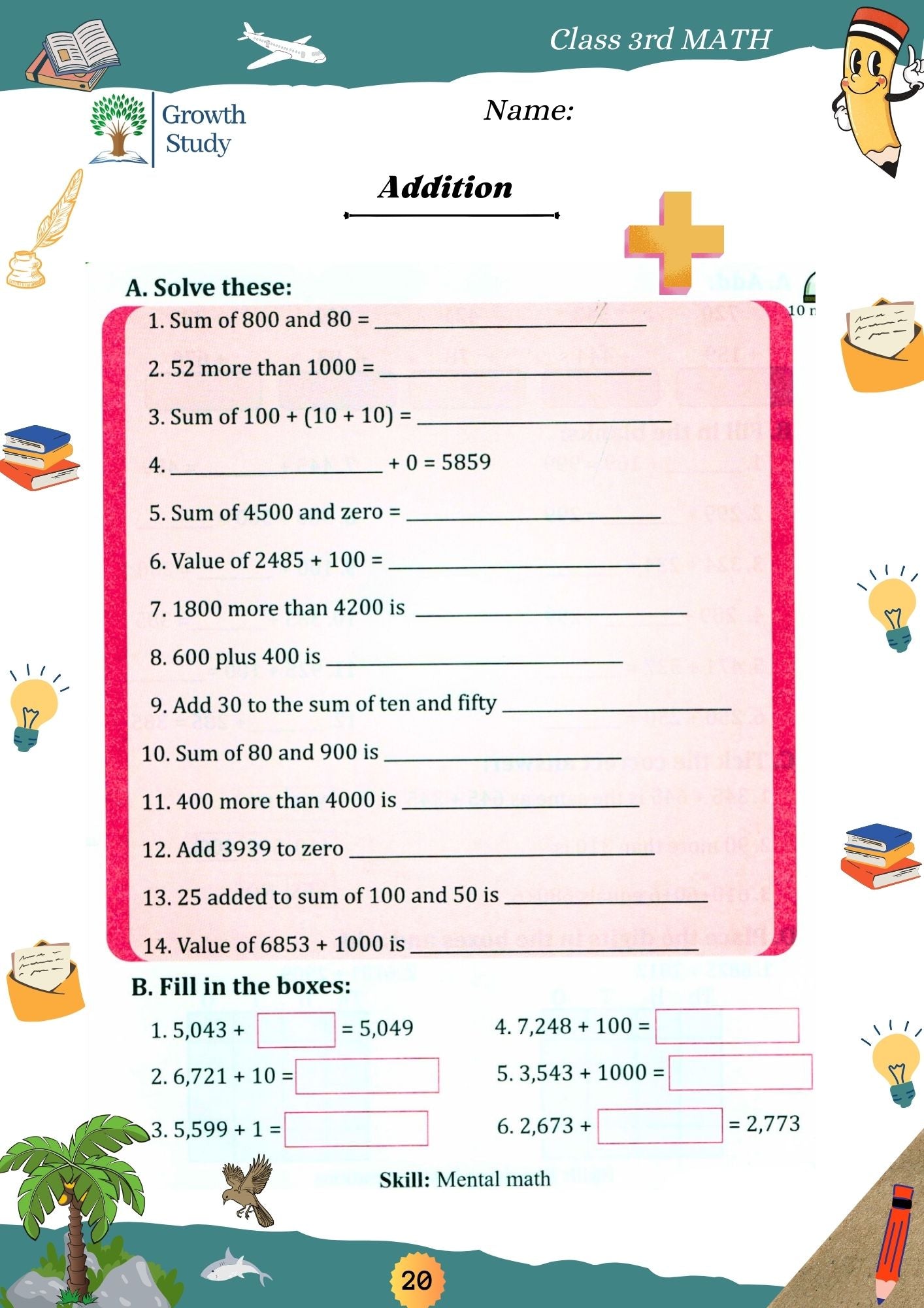 š Printed Worksheets for Class 3 ā Math, English & EVS