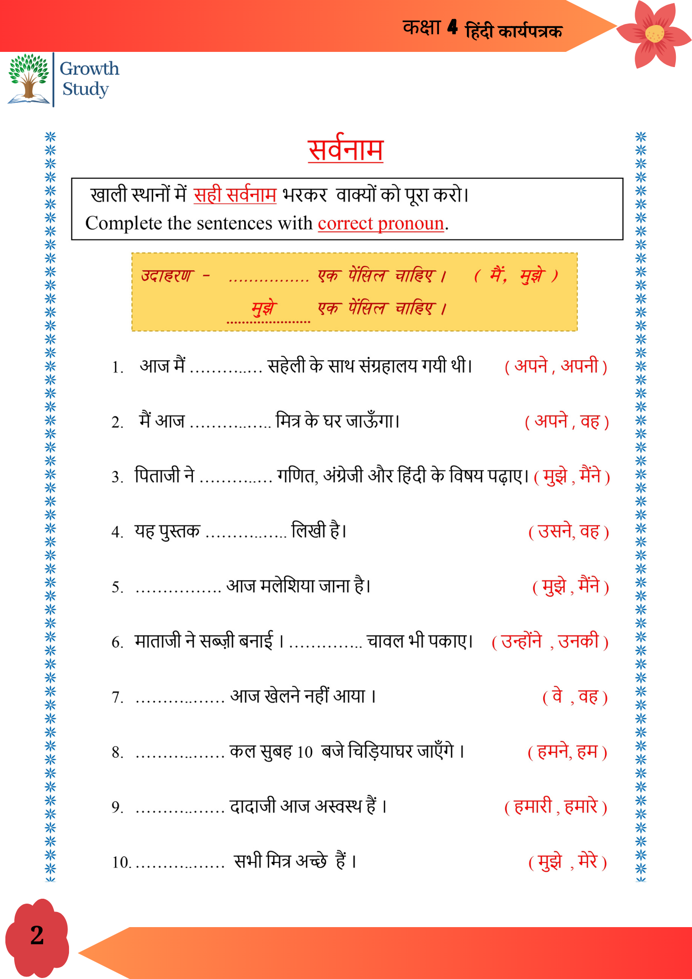 Each worksheet is carefully structured to improve reading, writing, and expression in Hindi while building confidence in the subject. The simple format and practice-based approach make it perfect for school revision, homework, and exam preparation.